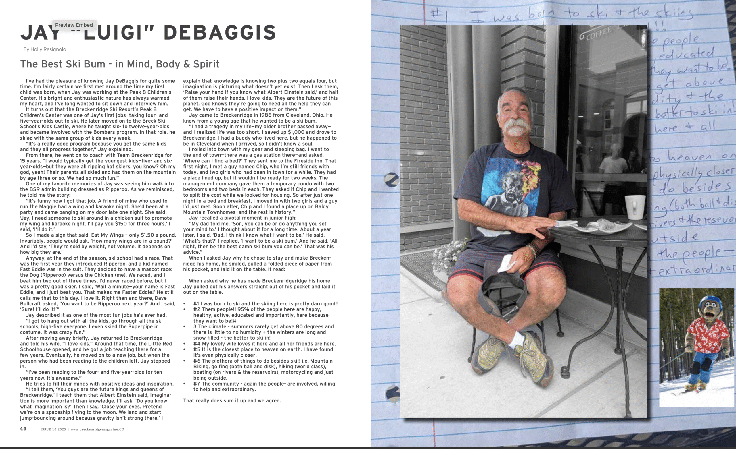 Jay Luigi DeBaggis – The Best Ski Bum Story Breckenridge Magazine